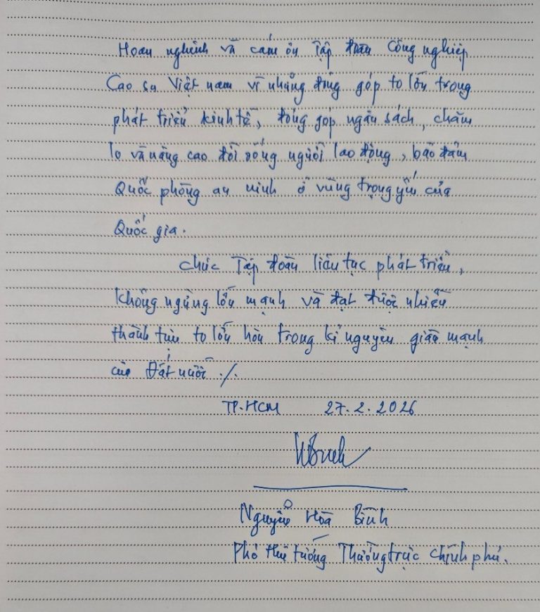 Phó Thủ tướng Thường trực Chính phủ Nguyễn Hòa Bình thăm và làm việc với VRG